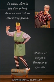 Les ateliers clown à Bordeaux permettent de sortir de sa zone de confort et d'expérimenter l'interdit. Etre libre ! Suivre une idée, un problème, un incident jusqu'à la folie.